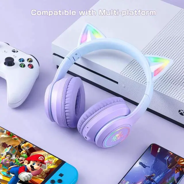 RGB Cat Ears: The cat ears are RGB backlit, and the ear-pads logo parts have RGB backlight. Light up your world with this headphones