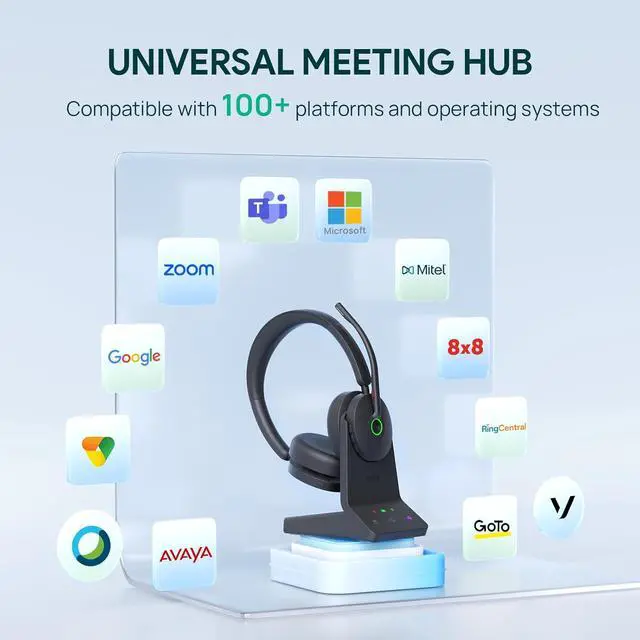 • 606ft DECT & BT Dual-Mode: Revolutionize your workflow with dual-mode wireless headphones, supporting simultaneous connection to 3- devices(PC/desk phone/mobile). Enjoy ultra-long 606ft wireless range,secure encrypted calls, and robust interference resistance in dense office.