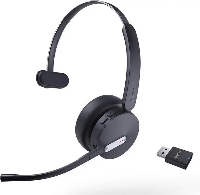 Yealink WH64 Hybrid DECT& Bluetooth Wireless Headset, 492ft Range Mono Teams Headphones with DECT Dongle, 3X Mic, 26H Talk Time, Office Work Portable Single On Ear Headsets for PC,Cellphone,Laptop
