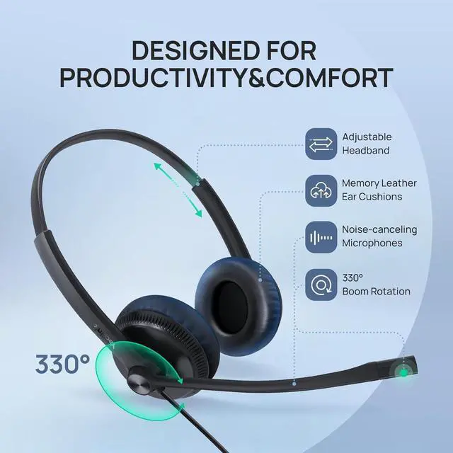 3. Upgraded Comfort with Leather Ear Cushions YHS34 telephone headset features premium leather ear cushions, upgraded from foam in the Lite version. The leather material provides enhanced softness and durability, ensuring superior comfort during extended use.