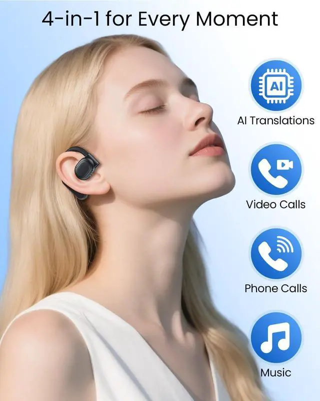 4-in-1 Multifunctional Design: These translating ear buds real time combine AI real-time translation, video calls, phone calls, and high-quality music in one compact device. You can switch from translating conversations to enjoying music without changing devices. Designed for productivity and convenience, these wireless earbuds translator device simplify your digital setup. Ideal bluetooth translation headphones for work, travel, study, entertainment or everyday life.
