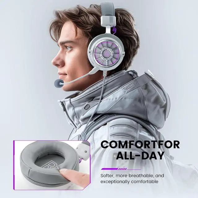 Unleash Your Inner Space Explorer- Enhance your gaming with our space-inspired PC headset, combining futuristic elements with cutting-edge design. The earcup grille design fuses cosmic allure with gaming, taking you on an otherworldly gaming adventure. Immerse yourself in a universe of sound, style, and imagination, and elevate your gaming to new heights with our Space-Inspired Headset.