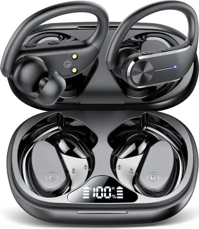 Ear buds Wireless Bluetooth Earbuds, Sport Bluetooth 5.3 Headphones with LED Display , 68H Playtime, Powerful Bass Over Ear Earphones with Earhooks IP8 Waterproof for Gym/Running/Workout