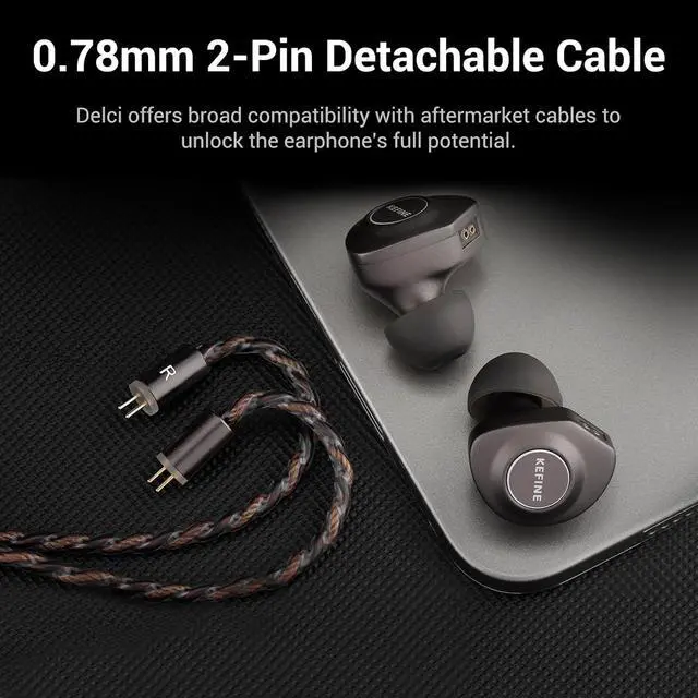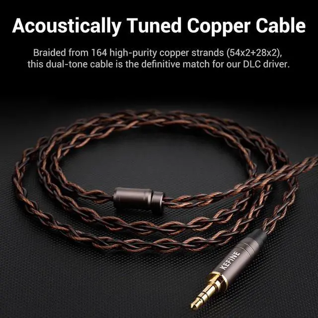 High-Purity 164-Core Copper CableThe 1.2M dual-color cable consists of 164 high-quality copper wires, specifically tuned to enhance the warmth and clarity of the DLC driver. It features a universal 3.5mm plug and a detachable 0.78mm 2-pin interface, allowing for easy cable upgrades to maximize the earphone's potential.
