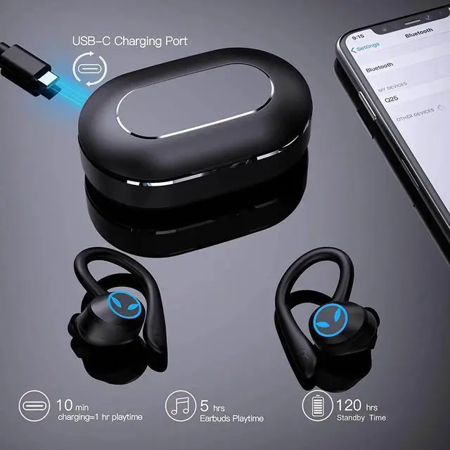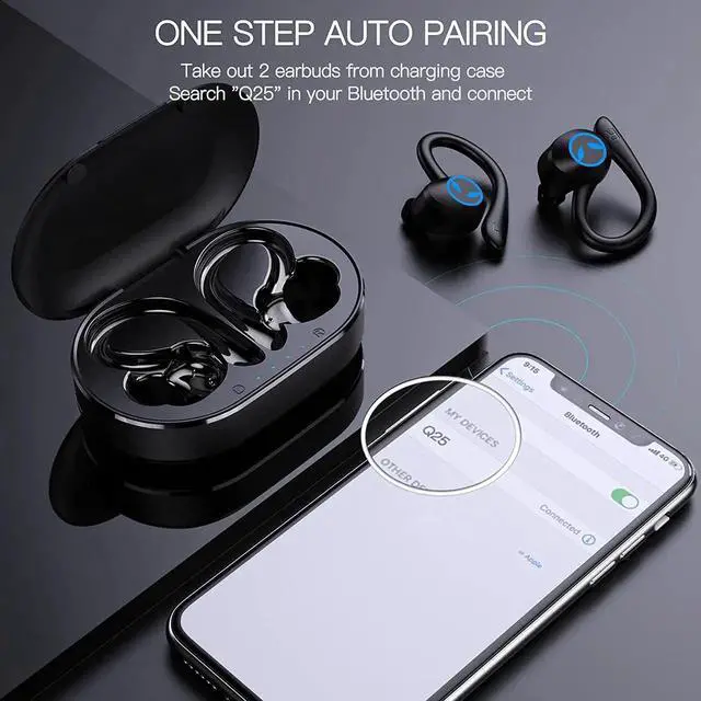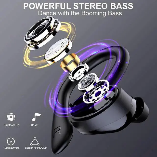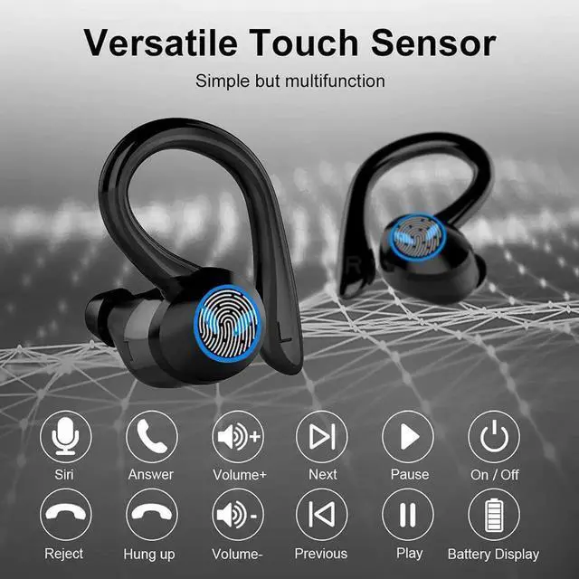 Features: Bluetooth 5.1 Chip The wireless earbuds adopt the most advanced ATS3009 Bluetooth 5.1 technology which provides more stable connection faster paring and universal compatibility. The maximum connection distance is 15 meters. Smart Touch Conrol The touch control of Donerton Bluetooth headphones includes the functions of increasing or decreasing the volume, answering and rejecting calls, previous song, next song, phone assistant and so on. Built in high definition microphone, let you answer the call easily. Sport designed earhooks The wireless sports headphones is equipped adjustable secure-fit silicone ear hooks and 3 pairs of ear caps (L M S) ensure your sports earbuds stay comfortably firm in place when doing sports. Strong Compatibility With the help of Bluetooth 5.1 technology, our sports earphones can be compatible with most Android phones on the market, iOS system and Windows system electronic devices, so you don't have to worry about the problem of incompatibility. Twin/Single Mode With a single earplug, you can do other things while listening to music. Using the two earplugs together can form a stereo sound, allowing you to be more focused when exercising, and you can also share it with your friends.