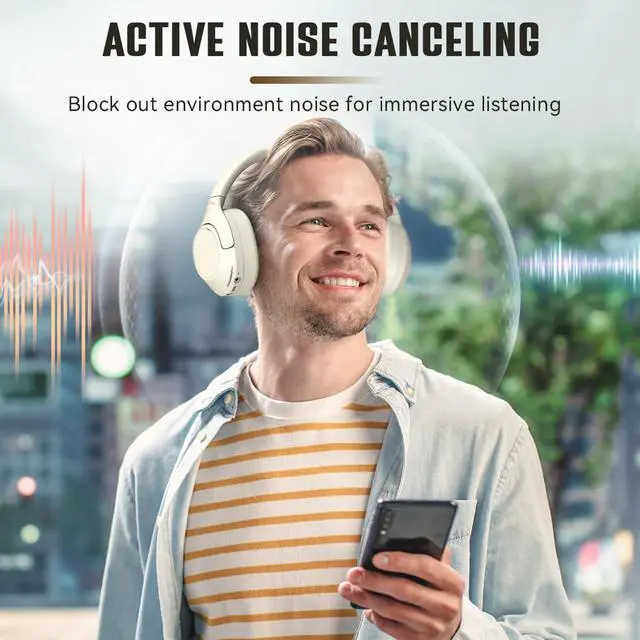 [Active Noise Canceling] The wireless headphones for phone can help you break away from crowds, subway rumble or office chatter, helping to isolate you from the noise around you and allowing you to focus more on your music or phone calls.