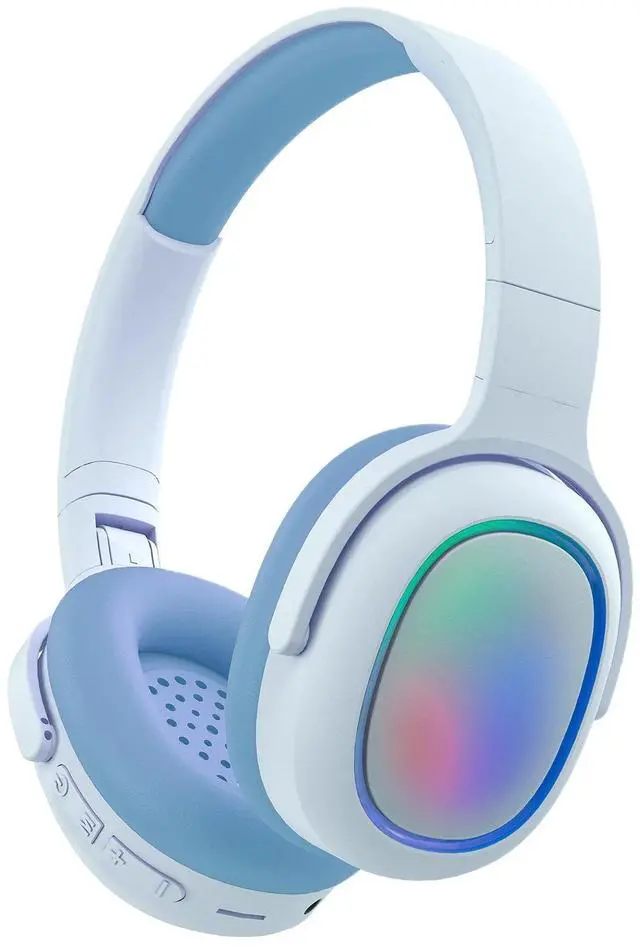 Bluetooth Headphones Over Ear, BT5.3, Colorful RGB Light, Long Playtime Wireless Headset, Noise Cancel, HiFi Stereo Foldable Lightweight Deep Bass for Travel Home Office Cellphone(Sky Blue)