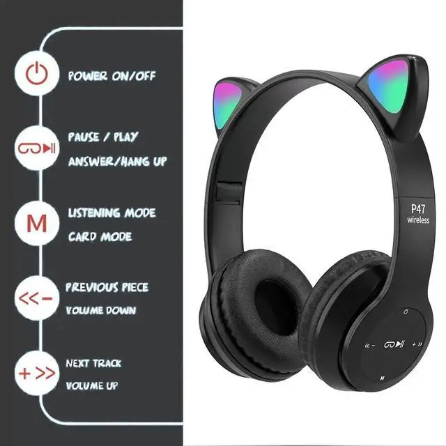 2. Fun Cat Ear Design: Featuring a cute cat ear design with LED lights, making them fun and visually appealing.