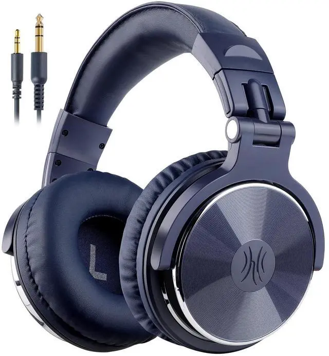 Wired Over-Ear Headphones with Mic-Noise Cancelling Earcups & Dual Ports for Studio Home Office Online Meeting-Dark Blue