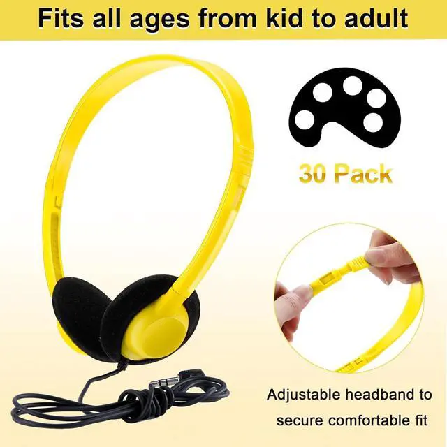 30 Pack Class Set Headphones for Students Bulk School Headsets Earphones with 3.5mm Jack Classroom Must Haves Teacher Supplies for Adults Laptop Computer(Yellow)