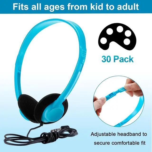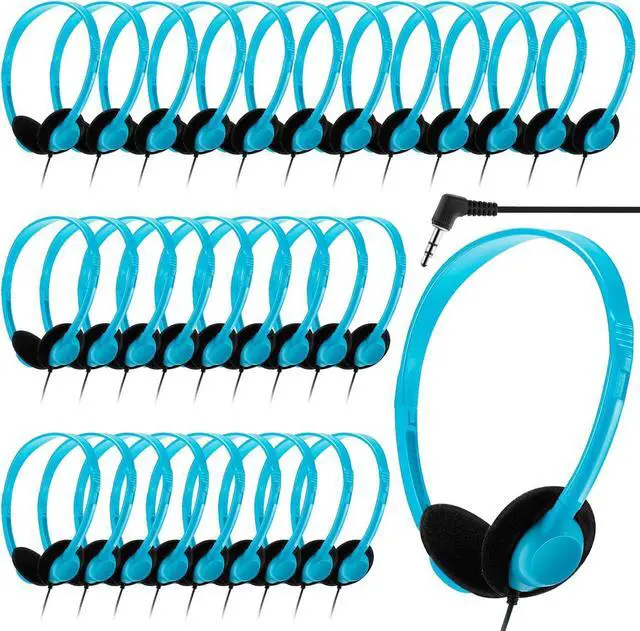 30 Pack Class Set Headphones for Students Bulk School Headsets Earphones with 3.5mm Jack Classroom Must Haves Teacher Supplies for Adults Laptop Computer(Lake Blue)
