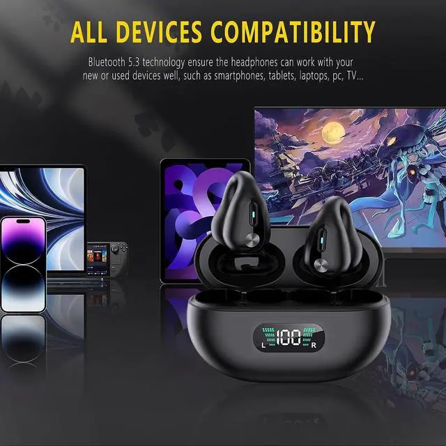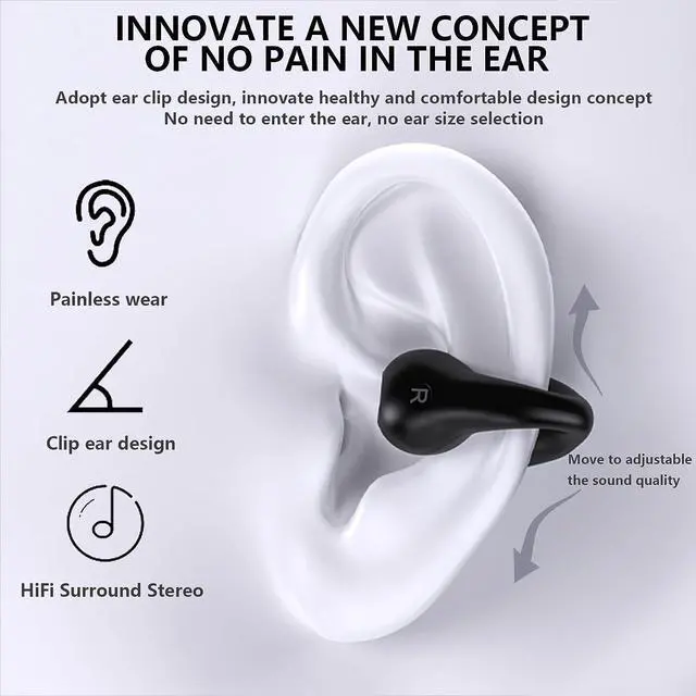 Wireless Ear Clip Headphones, Bluetooth Open Ear Sport Earbuds for Android iPhone,Air Conduction Headphones for Cycling,Running Workout,Running,Driving
