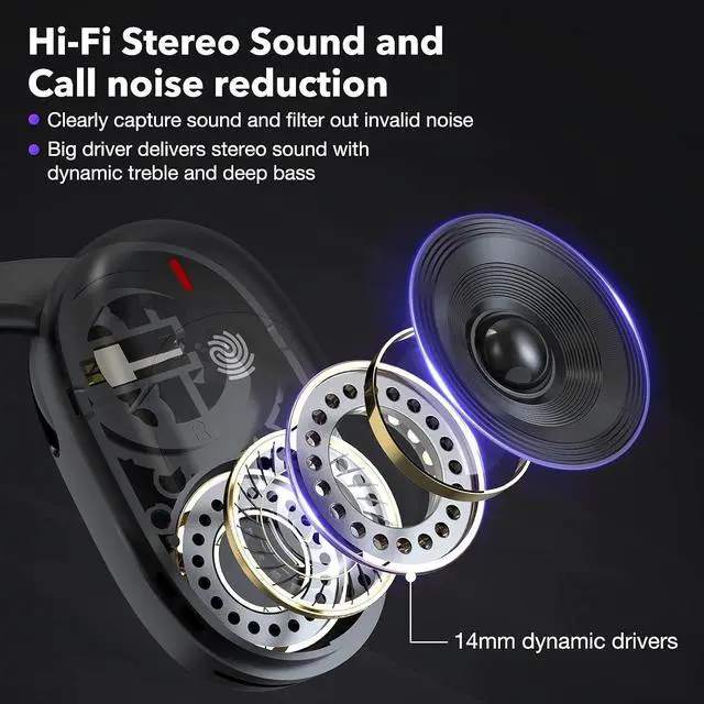 [Excellent Sound Quality] Equipped with a 14mm dynamic speaker, providing smooth calls and clear high-definition stereo sound. This open headphones can provide you with professional sound quality at any volume.
