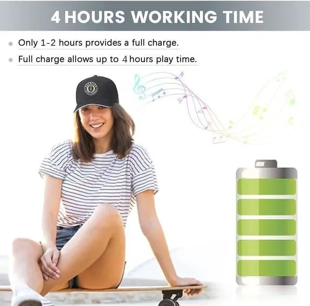 Bone Conductive Cap with Music&Callthe baseball cap is featured with innovative bone conduction technology to deliver sound through skull bones, providing a safer way to listen to music and take calls, allowing you to enjoy music and answer calls with heightened awareness of your surroundings. For best listening experience, 50%-60% of volume is recommended to use in public.