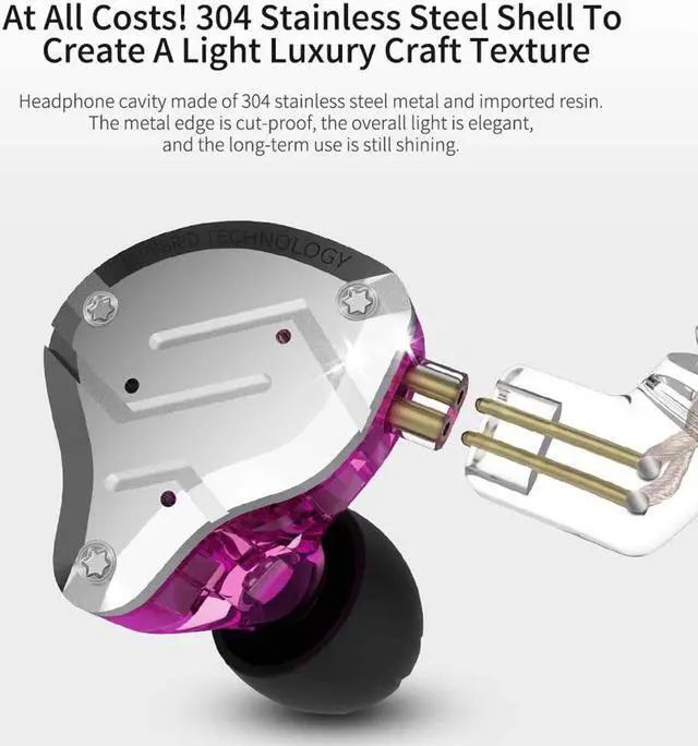 Durable 304 Stainless Steel Penal: KZ ZS10 pro monitor headphone uses the 304 stainless steel shell and resin as the major structure material, provide this KZ IEM Headset more durability feature and fashionable appearance.
