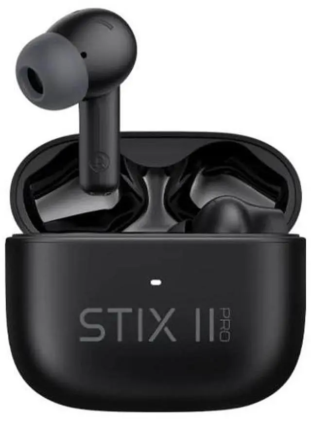 The STIX II Pro true wireless earphones with Active Noise Cancelling have optimised audio drivers, ENC Quad Pro microphone and Bluetooth 5.3 for super low power consumption. The ENC (Electronic Noise Cancelling) Quad Pro microphone delivers superior audio quality for voice calls over the internet, and the latest Bluetooth chipset extends calls/play time up to 7 hours. The STIX II Pro includes a pocket sized rechargeable carry case which charges the STIX II up to 3.5 times, super-fast 50 minutes charge time, built-in Smart Touch to control your music/calls and IPX5 water resistant chassis to enhance your audio experience.