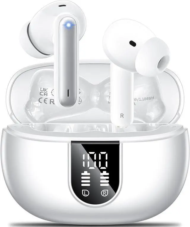 LED Display & 42 Hours Playtime: Separate LED wireless headphones battery display design, you can clearly see the charge level of each earbuds and charging case. Bluetooth headphones A charging case with USB-C charging cable, it takes only 1.5 hours to fully charge the rechargeable case using the charging cable. The headphones offer 6-7 hours of music, the portable charging case can provide you with an additional 42 hours of playback