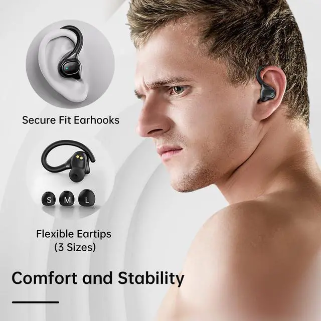 Designed for Active Lifestyles: Stay motivated during workouts with our sport earbuds. They provide a secure and comfortable fit that won' t slip or fall out, allowing you to focus on your exercise. No wires to hold you back!