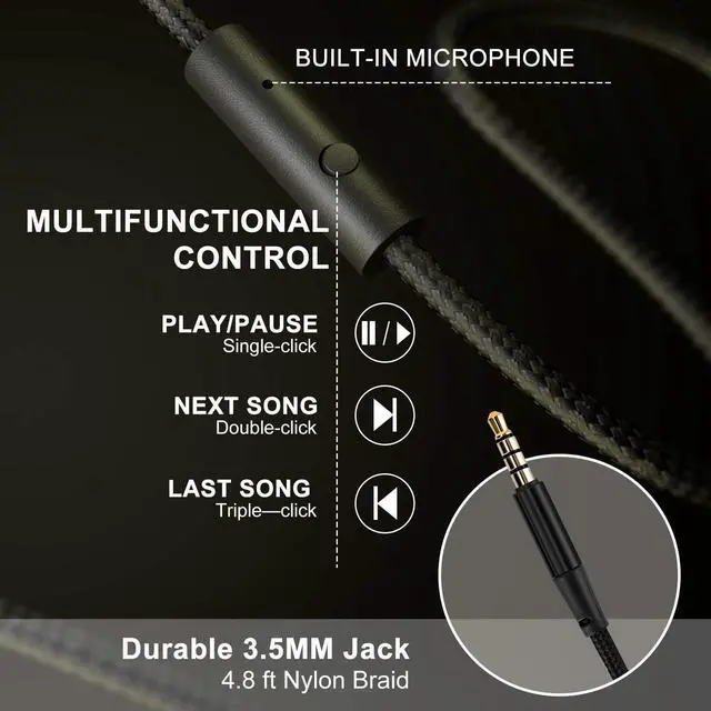 Easy in-line control with microphoneFriendly in-line microphone for making calls, and skipping tracks forward and back. These on ear headphones with microphone support a wide range of devices like cell phones, computers, laptops, MP3, MP4 players other 3.5 mm audio jack devices for gym, listening to music and games.