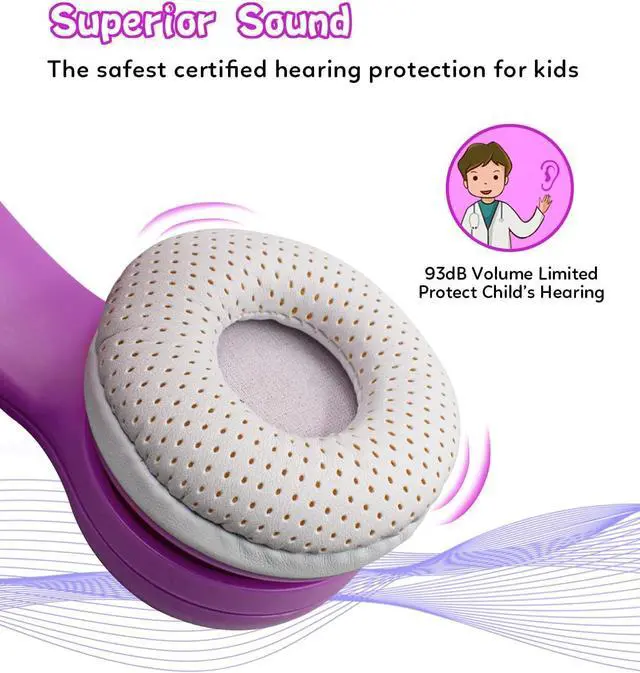 Amazing music experience: yusonic kids Bluetooth headphones uses 40mm professional children' s speaker (93dB volume limit), and EQ technology to produce high-quality sound, accurate guitar, clear voice, clean bass and crisp percussion instrument. Excellent stereo sound quality gives you a panoramic view of your music, including subtle details you may never notice. Now all girls and boys can enjoy their favorite content without endangering their hearing.