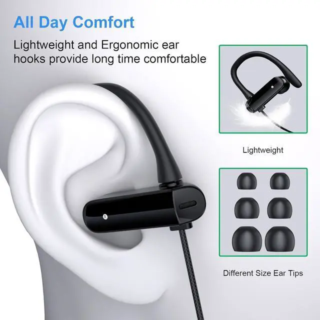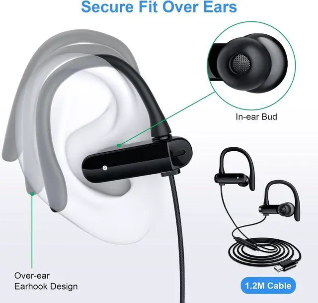 Over Ear Design: The over earbuds are designed with ergonomic flexible earhooks, fit your ears and hang stable without falls. The looser fit & lightweight build allows to remain comfortable even after extended use