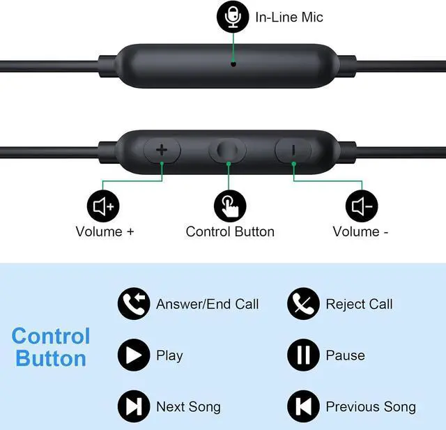 Mutifunctional In-line Control: In-line buttons allow you to play / pause your music, adjust the volume, skip / replay tracks, and activate your voice assistant all without ever needing to touch your phone. Built-in high-quality microphone allow you with clear and crisp sound during a call whenever you are at gyms or walking on the street, answer/end calls easily