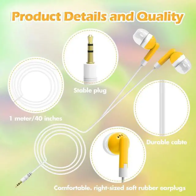 School earphone, 3.5 mm Plug works with iPods, iPhones, iPads, Chromebooks, Tablets, Computers, CD Players, Fitness and Audio Equipment