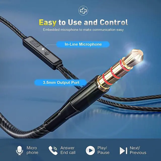 [Built-In microphone and Multi-Function Button] - Earbuds wired with a microphone allow for hands-free communication when you wear an in-ear headset, high-definition calls, and no-noise speech. The one-touch multi-function button at the microphone allows you to play, pause, answer/end calls, and skip/previous song without picking up the phone, making operation very convenient