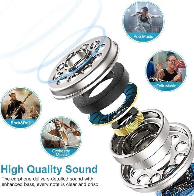 High-Quality Sound: The wired earbuds can effectively reduce outside noise and keep the sound in your ears, so the earbuds with microphones of powerful bass drivers, make the sound clearer and three-dimensional, making listening to music a pleasure