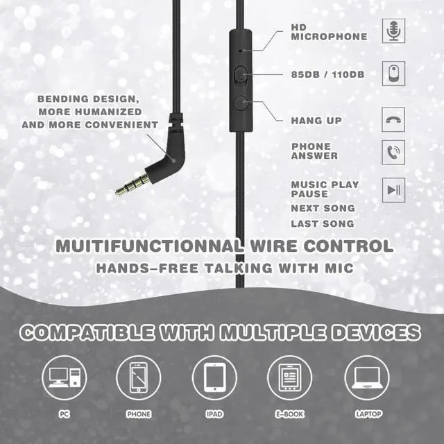 & Built-in Mic: 1.2M cord With the standard 3.5 mm headphone jack, kids headphone works with Ipad, tablets and more. The built-in mic lets you pick up calls and skip between tracks without missing a beat.