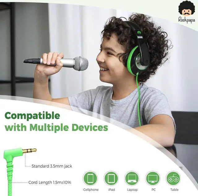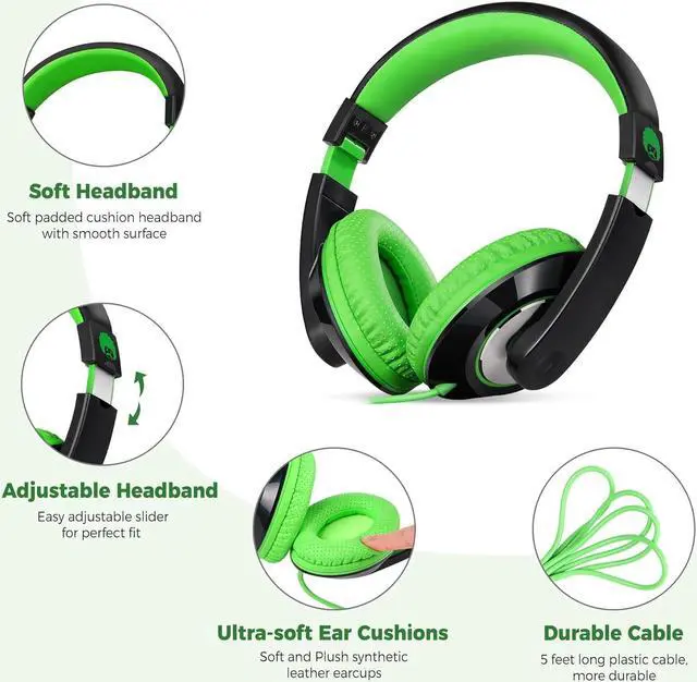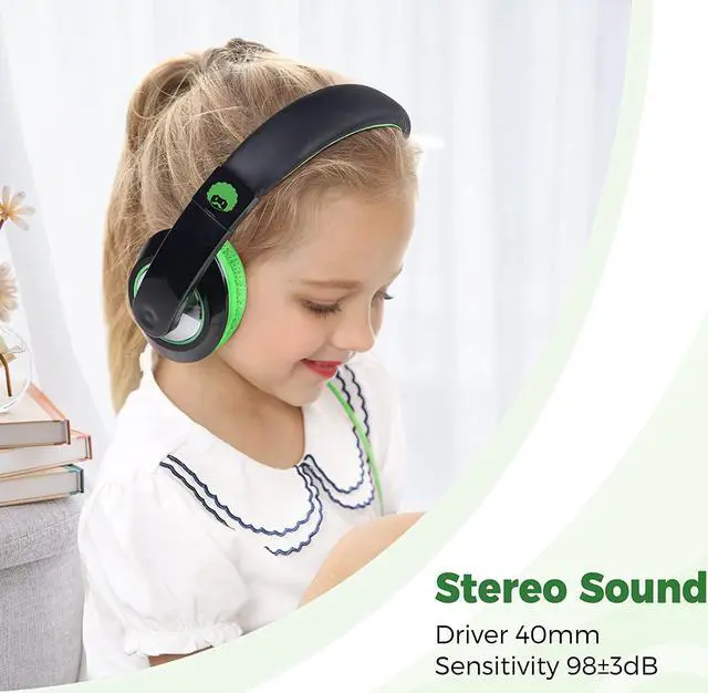 Stereo Headphones >> Built-in 40mm Audio Driver which Provides the Clear Sound with the Rich Bass and Crisp Midrange, the Large Soft Ear Pads are Designed for Kids to Maximum Noise Reduction, Enjoy the Joy of Music.