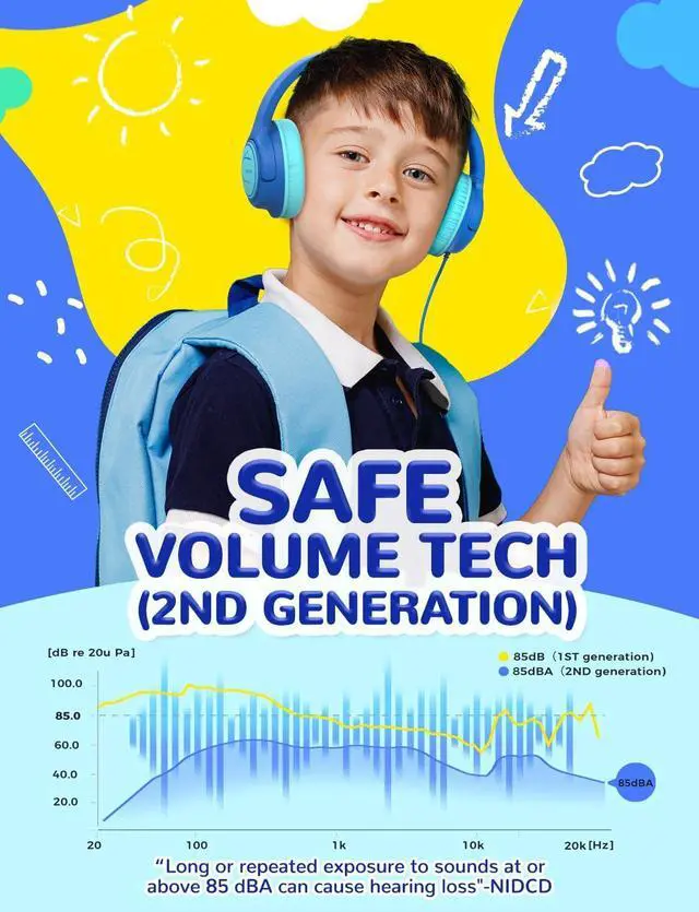 Safer Kids Headphones: Designed to prevent hearing loss, iClever kids headphones boast 2nd generation 85dBA safe volume limit technology which meets CDC recommendations. Kids can enjoy up to 8 hours of listening without exceeding the daily noise level, creating a healthy listening environment for them, whether learning or indulging in entertainment!