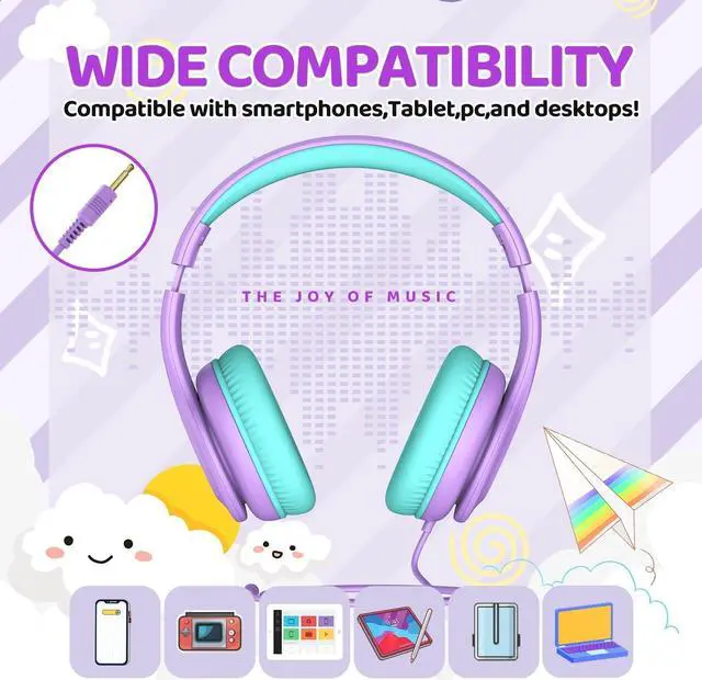 Extensive Compatibility: JoySpark kids headphones with cord are universally compatible with most 3.5 mm plug-enabled devices. Simply plug in and enjoy hassle-free connectivity with smartphones, PCs, laptops, tablets, and more.