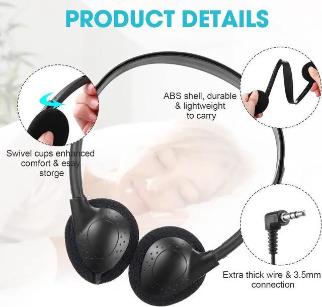 Universal Headphone Plug: these comfortable classroom headphones are about 4ft/ 120 cm long, compatible with 3.5 mm jack devices, have high fidelity stereo sound, and provide nice sound quality, suitable for most mobile phones, CD players, fitness equipment or other equipments, ideal for classroom use and school testing