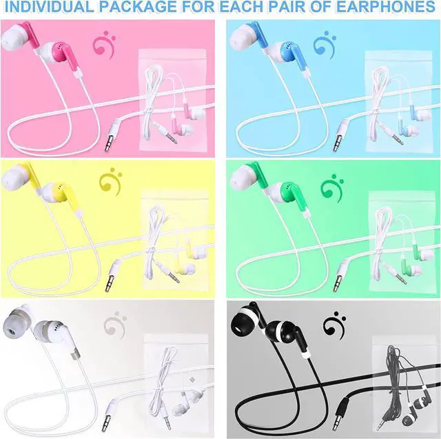 Share: you will receive 60 pieces of bulk earbud headphones that are each wrapped individually in a bag, abundant to use as class sets of headphones for students to meet demand, available 6 colors, stylish and beautiful