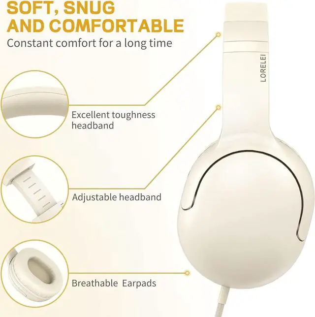 Immerse into the beat ]: LORELEI E5 wired headphones with microphone adopt High-definition 40mm driver and compact earcups design, which deliver exceptionally clear sound with full dynamic range and rich bass and crisp mids.