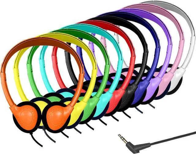Highly durable 10 color kids classroom headphones (set of 10), Cord Length 1.2 m/ 47.25 inches.