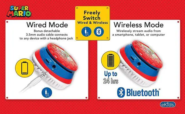 Perfect Gift: Kids wireless headphones feature cool graphics inspired by the popular video game. Looks great on any fan of Super Mario Bros, and makes the perfect gift for any occasion. Visit the ekids brand store to explore even more cool products!
