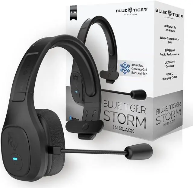 S IN THE BOX: The Storm Headset, USB-C Charging Cable, D/C vehicle adapter, Extra Mic Cover and Quick Start Guide
