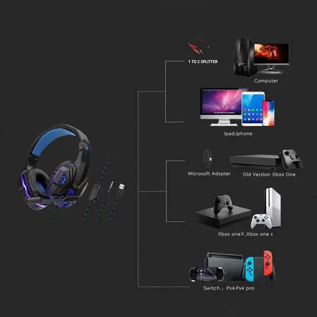 This cool headset supports PS4, Xbox One S, Xbox One X, Nintedo Switch and mobile phone, laptop, tablet, Ipad and PC etc.