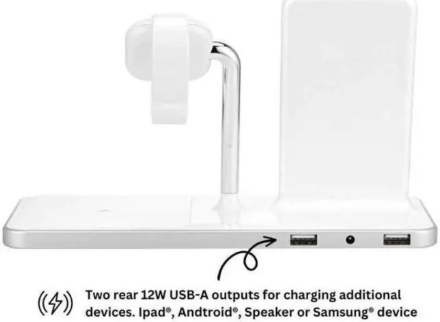 Optimized wirelsss charging for your iPhone, Apple Watch, and Airpods in one compact and powerful charging station. Compatible with iPhone 8 (and newer), all Apple Watch models, and wireless cases for AirPods and AirPods Pro.