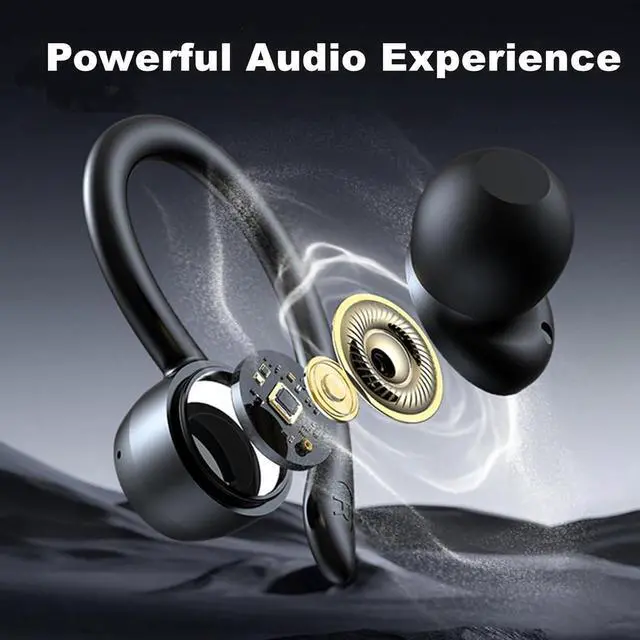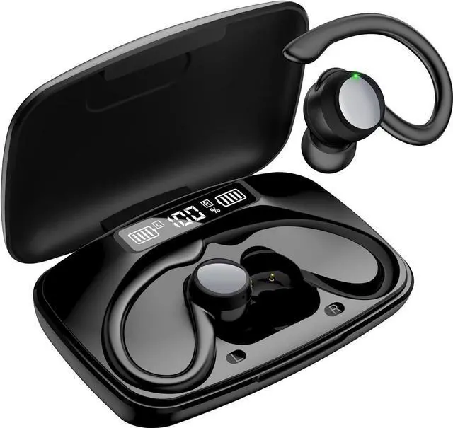 True Wireless Earbuds, Bluetooth Headphones 120H Playback Wireless Sports Earbuds with Over Ear Earhooks LED Display Charging Case IPX7 Waterproof Bluetooth Earphones for Running Workout, Black
