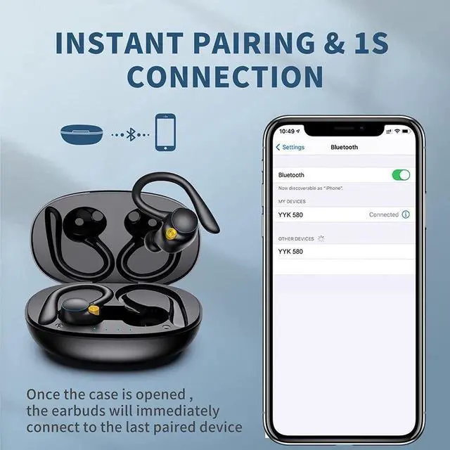 [Bluetooth V5.2 Technology and Auto Pairing] Equipped with latest blue tooth 5.2 technology, the wireless earbuds has more stable connection, which greatly improve the transmission speed and providing you with a low-latency listening experience.