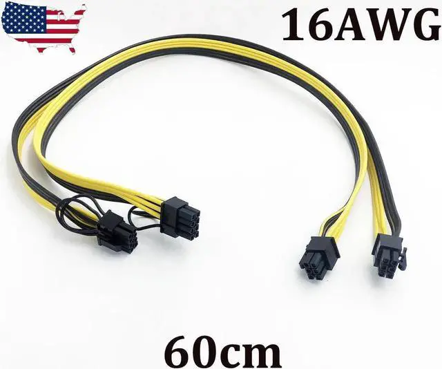 2 Pcs 6 Pin Pci-E To 8 Pin (6+2) Pci-E Power Cable 60Cm For Graphic Cards Gpu