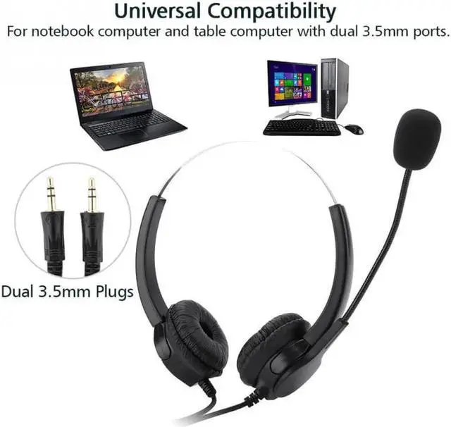 • Aomoproing Dual 3.5mm Noise Cancelling Call Center Headset Mobile Phone Cable Wired Headphones for Meeting Customer Service Call Center