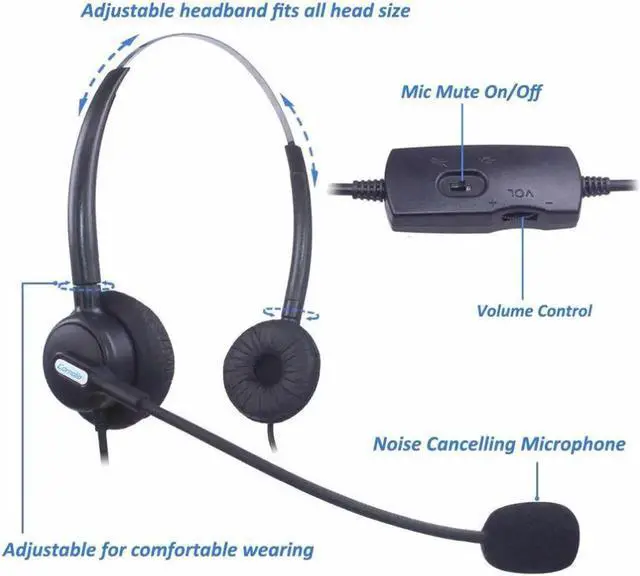 Aomoproing Wantek Call Center Phone Headset for Polycom SoundPoint 300 301 430 501 550 600 601 650 Lazerbuilt Orchid Packet8 IP Telephone