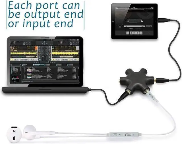 Mix music by connecting multiple music players at once.Each port can be output end or input end,having fun and sharing music with your friends