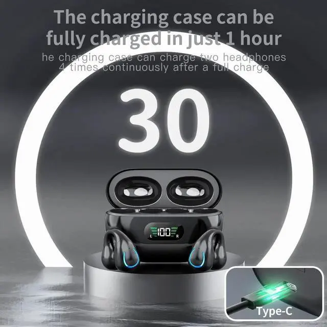 Wireless Headphones, Bluetooth Ear Clip Earphones, 30H Playtime Open Ear Clip Headphones with Mic, Mini Wireless Earbuds Bluetooth for Running Sport Gym, USB-C, Compatible with iPhone Android (Black)