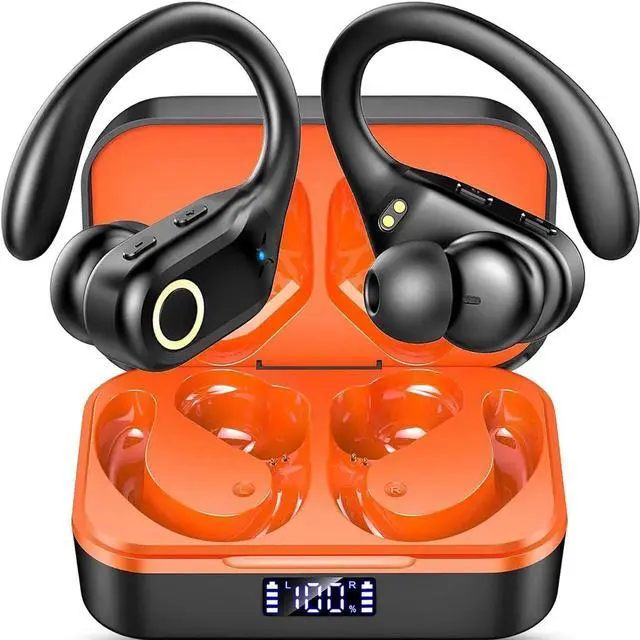 Wireless Earbuds Bluetooth 5.3 Headphones Stereo Bass, ENC Noise Cancelling Mic HD Call, Over Ear buds with Soft Earhooks for Sports, 48H Playtime LED Display, IP7 Waterproof Earphones for Android IOS
