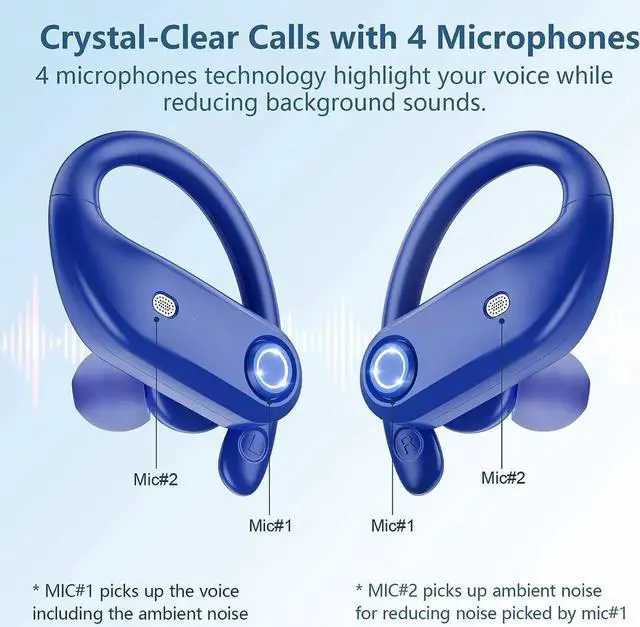 4 Mics Enhanced Call Performance. Each wireless earbud has built-in 2 microphones, 4 dedicated microphones can achieve precise voice pick-up and isolate external environmental noise through algorithms, make sure other people hear your voice clearly.